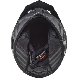 Casque jet. Coque en KPA : mélange breveté de polycarbonate, de composites thermoplastiques pour le transport spatial et de matériaux additionnels. Fermeture de la jugulaire par boucle micrométrique. Mentonnière amovible renforcée. EPS multi-densité. Système de ventilation optimisant la circulation du flux d'air. EPS multi densité. Intérieur amovible et lavable, respirant et hypoallergénique. Mousse découpée au laser. Écran fabriqué à partir d'un polycarbonate de « classe A » avec optique correcte 3D, un polymère utilisé pour le transport spatial très résistant aux impacts en évitant la distorsion et en assurant une netteté optimale. Pare-soleil rabattable. Homologation ECE 22-06.