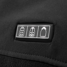 Lorsque vous connectez le port USB à la PowerBank (fournie), les boutons s'illuminent en rouge, blanc et bleu. En appuyant sur le bouton de la zone souhaité pendant 5 secondes, le mode haute température (Rouge, 65°C) est activé jusqu’à ce que la température cible soit atteinte. Un fois cette température atteinte, le gilet passe automatiquement en mode température moyenne (Blanc, 55°C). Il est possible de passer manuellement et à tout moment d’un mode a l’autre via 1 click sur la zone désirée.
